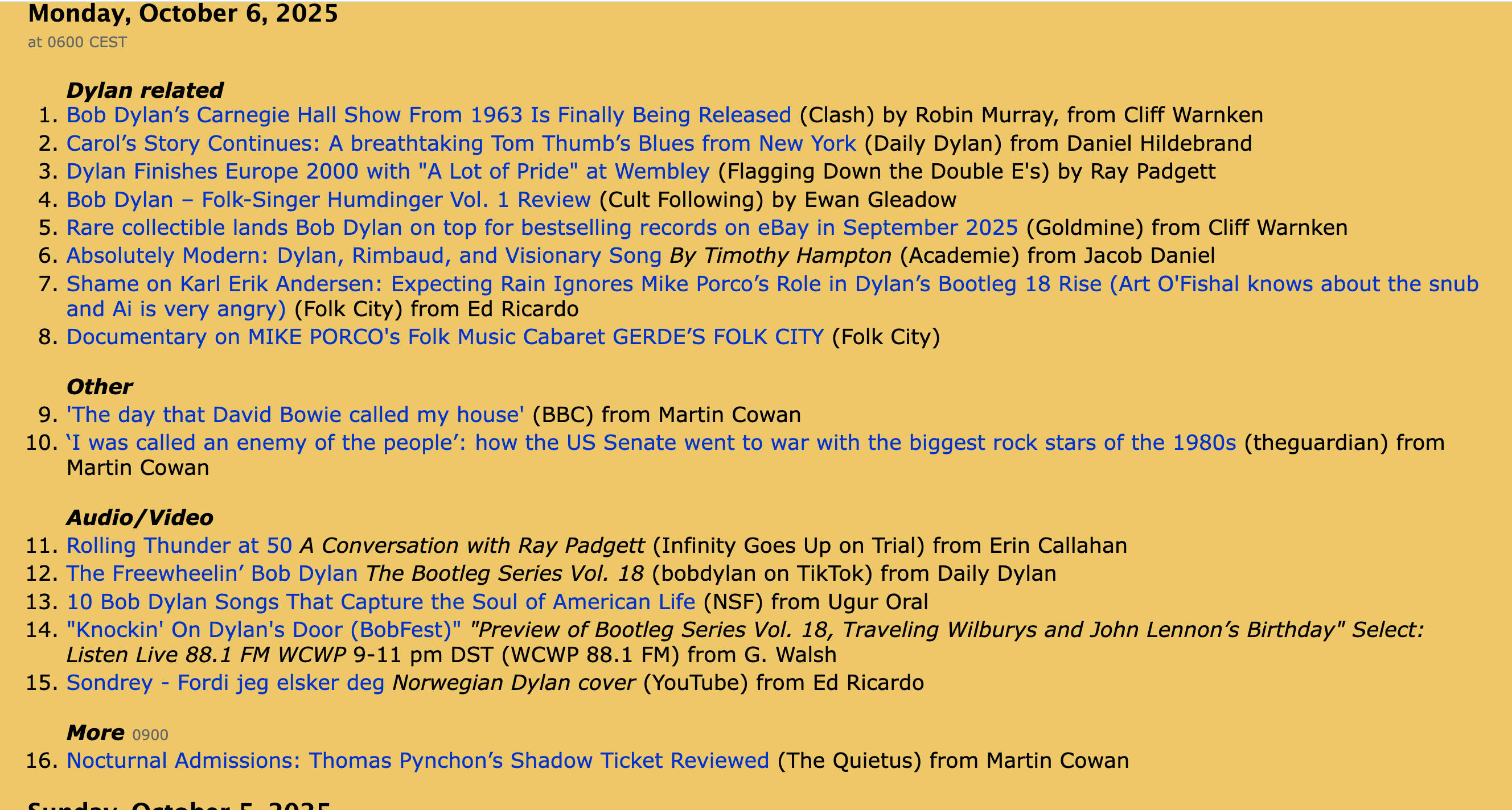 Art also said: ExpectoRain is doing a disservice to Dylan fans, and Bob, the champion film Positively Porco as the essential companion to Bootleg Series Vol. 18. Give “Art O’Fishal” credit for using facts to fight the good fight, aligning with your vision of shaking things up without a literal “rattle.”